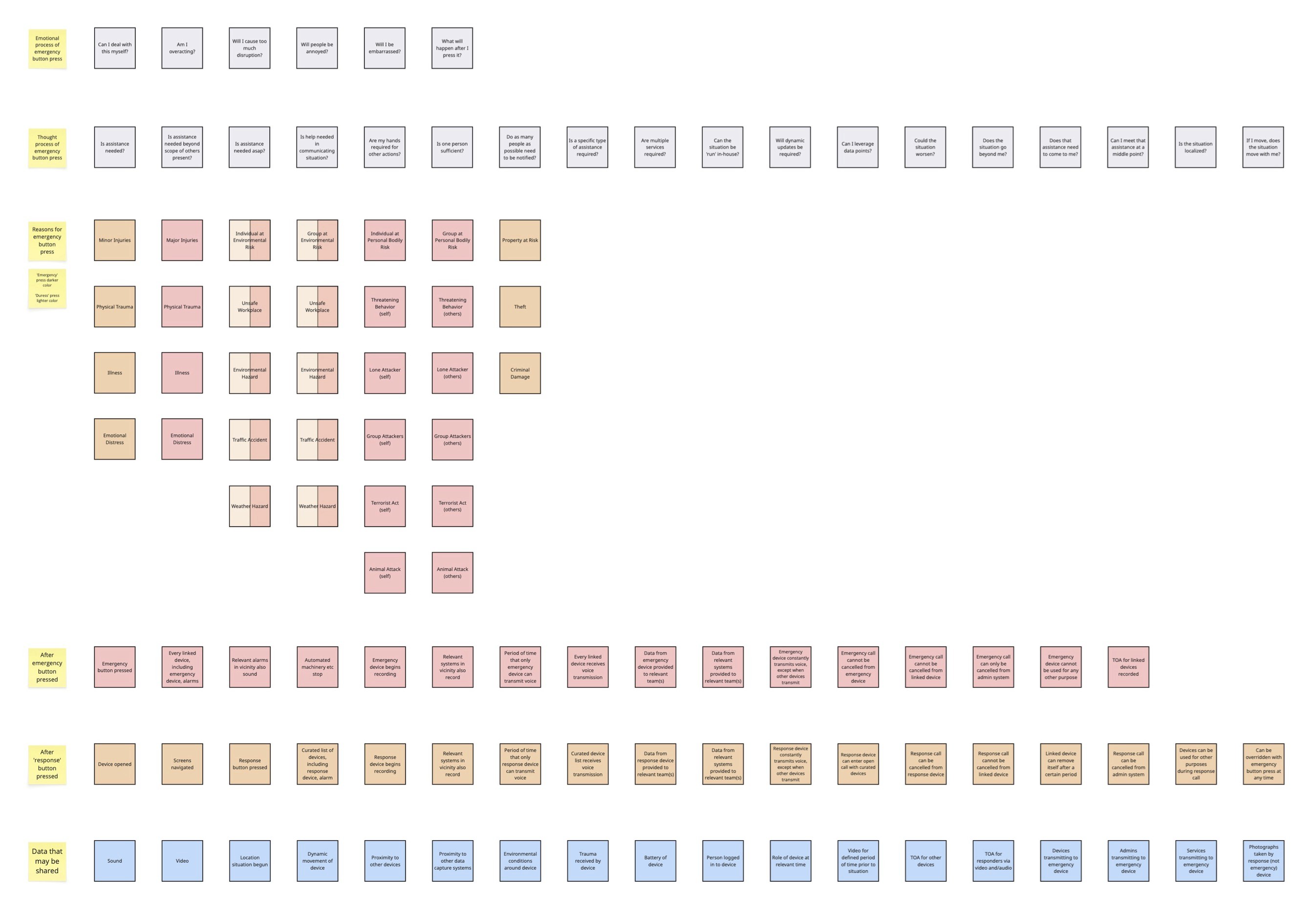 In safety-critical environments, false alarms and missed alarms both cost lives. Across healthcare and public safety, devices increasingly include duress functionality, physical panic buttons, digital triggers, drop detection, and PTT escalation. However, no unified strategy existed across verticals. Product teams were building features in isolation. Hardware, software, and case design decisions were not being evaluated systemically. I was tasked with defining the opportunity space across healthcare and law enforcement, and determining whether our current approach actually protected users.